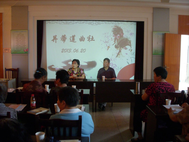 2013年6月20日,并蒂莲曲社开社仪式在并蒂莲社区居委会多媒体教室举行。共有31名社区老年居民参与了本次活动,开社仪式邀请杨守松工作室4位老师参加,杨守松老师向社区居民介绍了昆曲的由来及发展之路,工作室朱老师从每个字的发音、每段曲谱开始教授社区居民学习昆曲《牡丹亭》片段《游园》。 大暑已过,天气依旧酷热,挡不住社区居民学习昆曲的热情,7月25日,并蒂莲曲社的第六次昆曲学习活动在并蒂莲社区多媒体教室开展,通过前几次的学习,学员们完成了《牡丹亭》-《游园》的学习,朱老师开始向学员们教授新的曲目《牡丹亭》-《寻梦》,带领学员们感受杜丽娘的一片深情。 8月30日并蒂莲曲社开社以来的第10次昆曲学习活动,为了方便接下来昆曲课程中将动作与唱腔结合,曲社将培训场地转移到了正仪文体中心。老师边唱边教动作,大家也很认真的跟着老师学动作,几遍下来,大家不但能够不看曲谱唱出《牡丹亭》-《游园》来,还能比较熟练地将动作与戏曲连贯起来了。 由于学员的年纪比较大,天气炎热,虽然有戏曲的基础但也是第一次接触昆曲,这都给老师的教学增加了难度。集合问题项目团队,采取了一些措施:比如提前帮学员们准备好饮水;跟一些学员做了下交流,先由老师演唱昆曲《游园》让学员感受下昆曲的魅力,然后再逐个字的一个一个的练习发音;对年纪大的学员采取电子昆曲教育,刻录了光盘让他们在家里自学,其他的学员仍然继续随堂学习等,总体活动还算顺利。 上一条:没有了