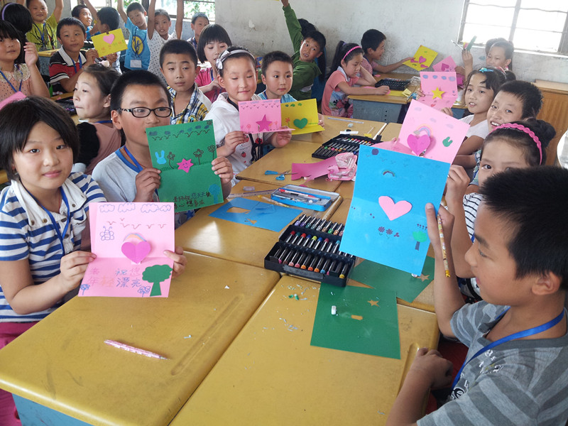 9月7日下午,项目小组为特地前来夏桥小学参加项目活动的孩子们进行了一场感恩教师节主题活动。项目小组由社工师、美术教师及志愿者组成,活动开始,社工师小叶点明了本次活动的主题,即感恩。孩子们踊跃发言说出自己对“感恩”二字的理解,有的说到感恩就是感谢,有的说到感恩是回报。在小叶的引导下,很多孩子说出了自己最想感恩的人和最让自己感动的事,其他孩子听得也很认真,感受到自己对老师的辛勤教导应存感恩之心。 教师节来临之际,项目小组设置了亲手制作教师节贺卡的环节。通过对贺卡范例的展示及制作过程的讲解后,孩子们开始忙了起来。项目组前期走访得知,由于学校场地、资金、物资有限,孩子们很少会参与这样的活动,看着他们一个个忙的不亦乐乎,尽情的发挥自己的想象力和创造力,我们都感到很欣慰。 活动结束时,每位小朋友都完成了自己的作品,将在教师节那天献给老师,感恩老师。此次活动共有49位外来工孩子参与,项目组会持续为这些孩子提供系统的项目活动内容,让他们更好的、全面的成长。