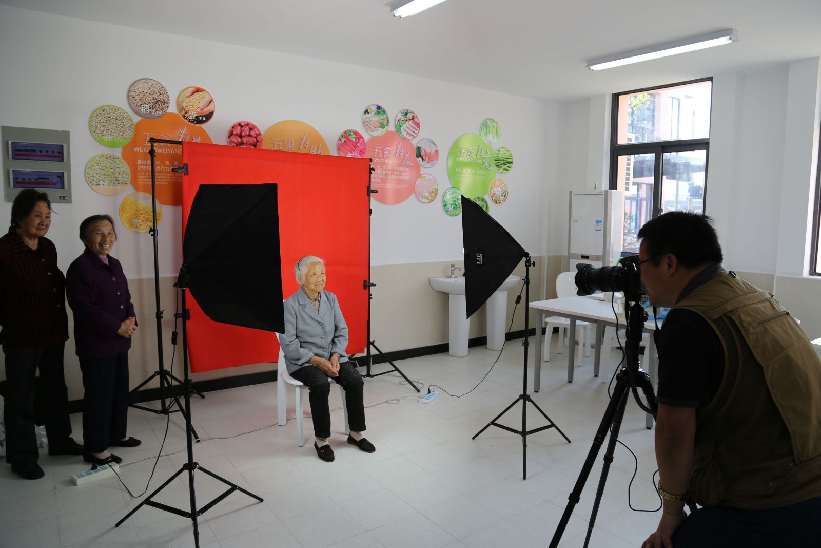 10月24日下午,花桥摄协组织摄影志愿者来到了新安社区的胜巷日间照料中心,为当地老年人免费拍摄证件照和生活照。