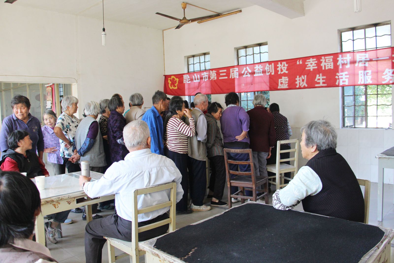 10月24日下午2点,横漕社区活动室里挤满了老人。原来是每月一次的“虚拟生活服务中心”现场服务开始了。
