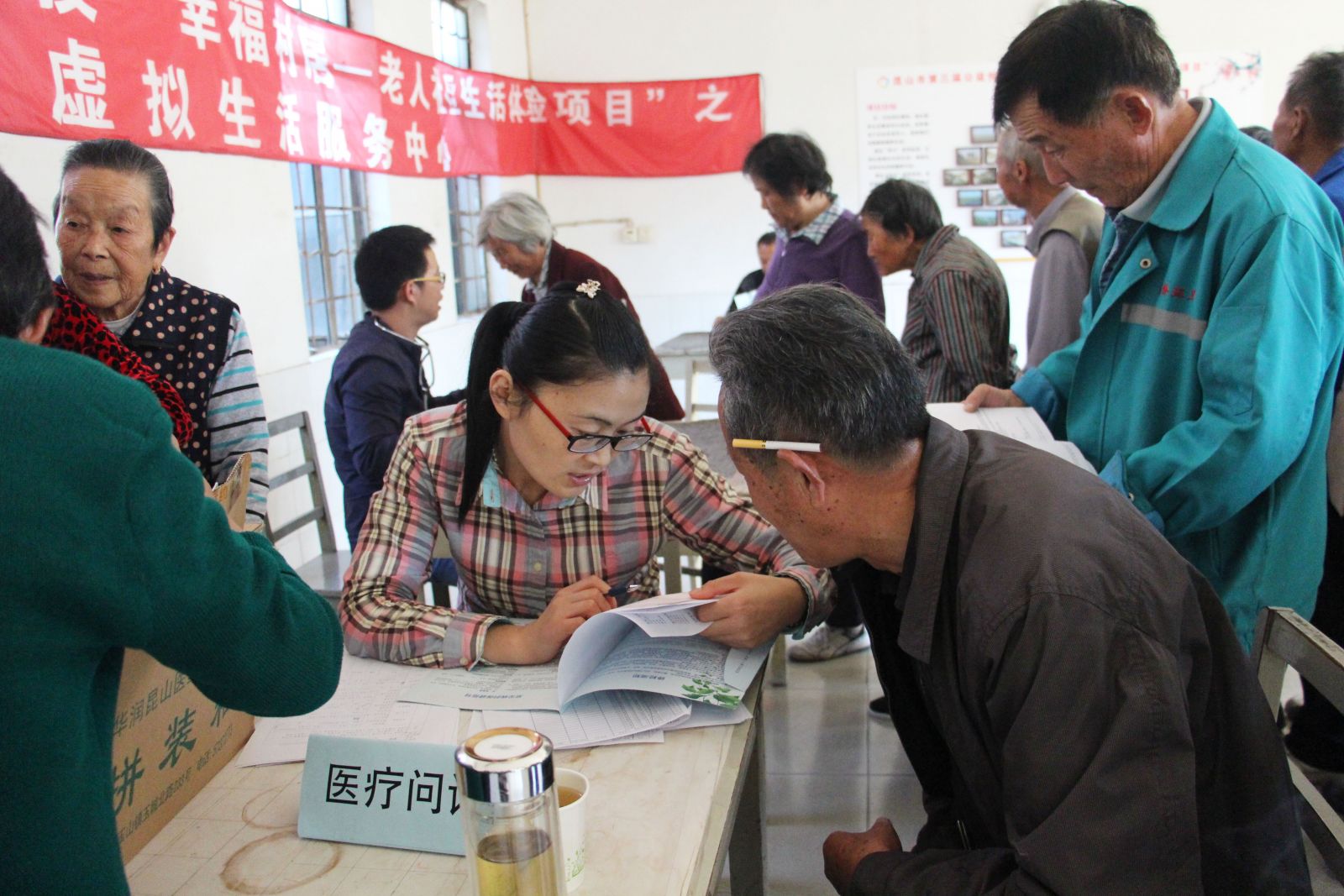 此次活动,项目组请来了两位医生,为老人提供医疗问询及测量血压的服务。还请来“镜头下的夕阳红”花桥摄影协会,为老人拍证件照和生活照。整个下午,“虚拟生活服务中心”人来人往,热闹非凡。每个服务窗口前整齐地排起了一列列老年队伍,在他们的脸上看到了期待的神情。截止到活动结束,“虚拟生活服务中心”共为49位老人提供了服务,为他们做了简单的健康检测与日常保健知识分析讲解,还为20多位老人拍摄了证件照和生活照。看着镜头里那一张张灿烂的笑脸,老人们仿佛都年轻了好几岁。