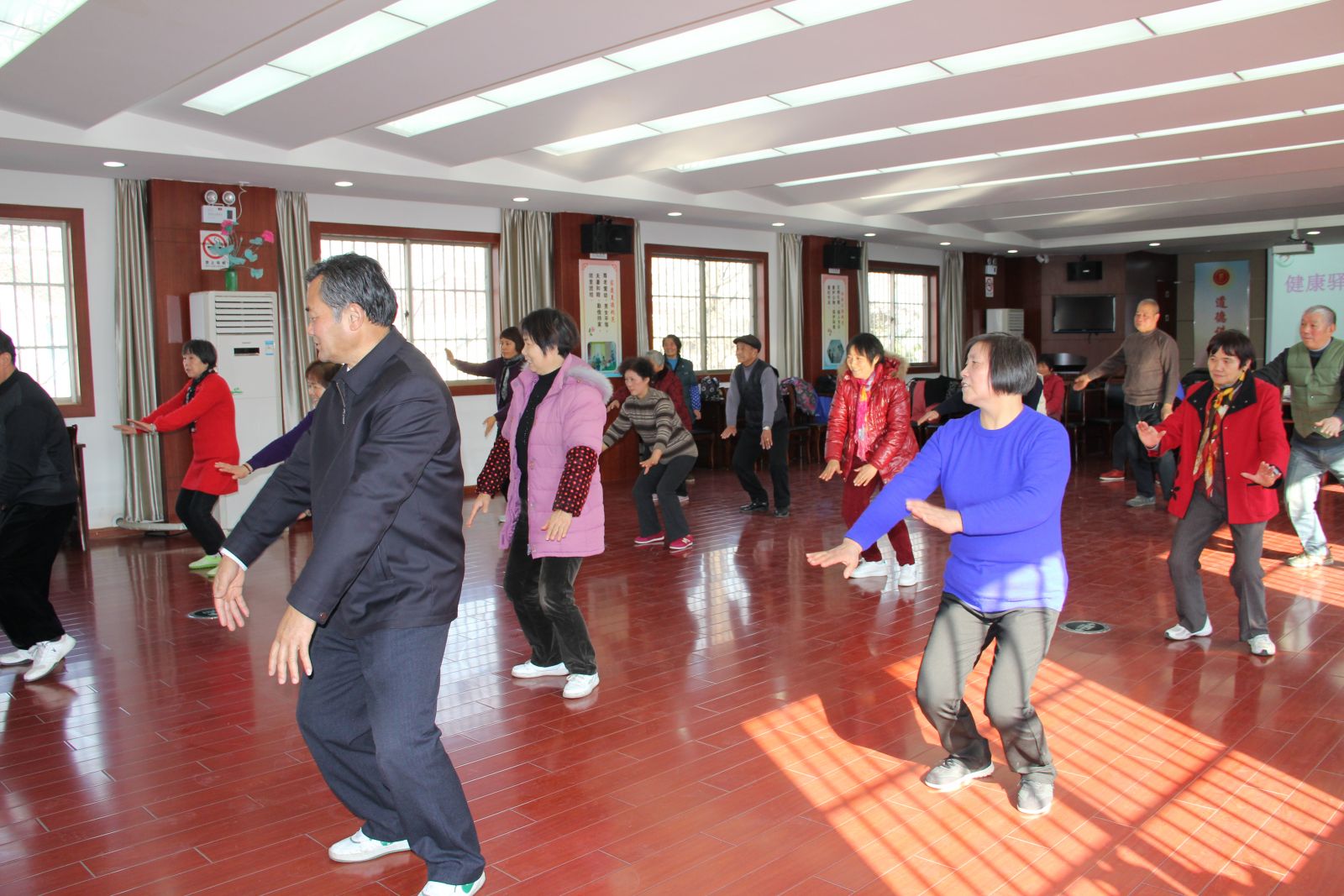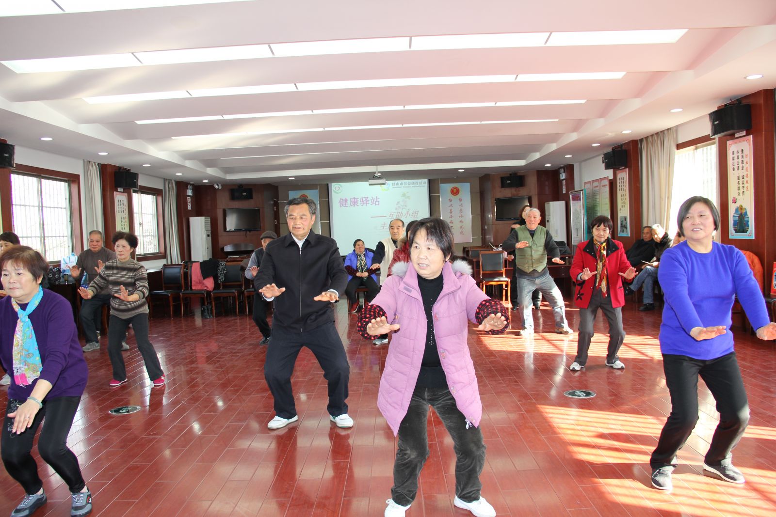考虑到服务对象们的身体状况,我们安排了动作舒缓、具有养生效果的太极拳教学,邀请了社区太极拳队张队长为大家进行指导。张队长首先对太极拳做了简单的介绍,随后为大家表演了《二十四式太极拳》,一套拳打下来犹如行云流水。看完张队长的展示,大家脸上都露出羡慕的眼神。“我早就想学太极拳了,这下有机会跟着老师好好学了。”何美玲阿姨说。刚开始学习时,有些服务对象的动作不协调,做出来的样子很逗趣,引得大家哈哈大笑。活动在欢乐而融洽的气氛中结束。大家学习得很认真,经过一个多小时的学习,学会了起势、左右野马分鬓、白鹤亮翅三节动作。