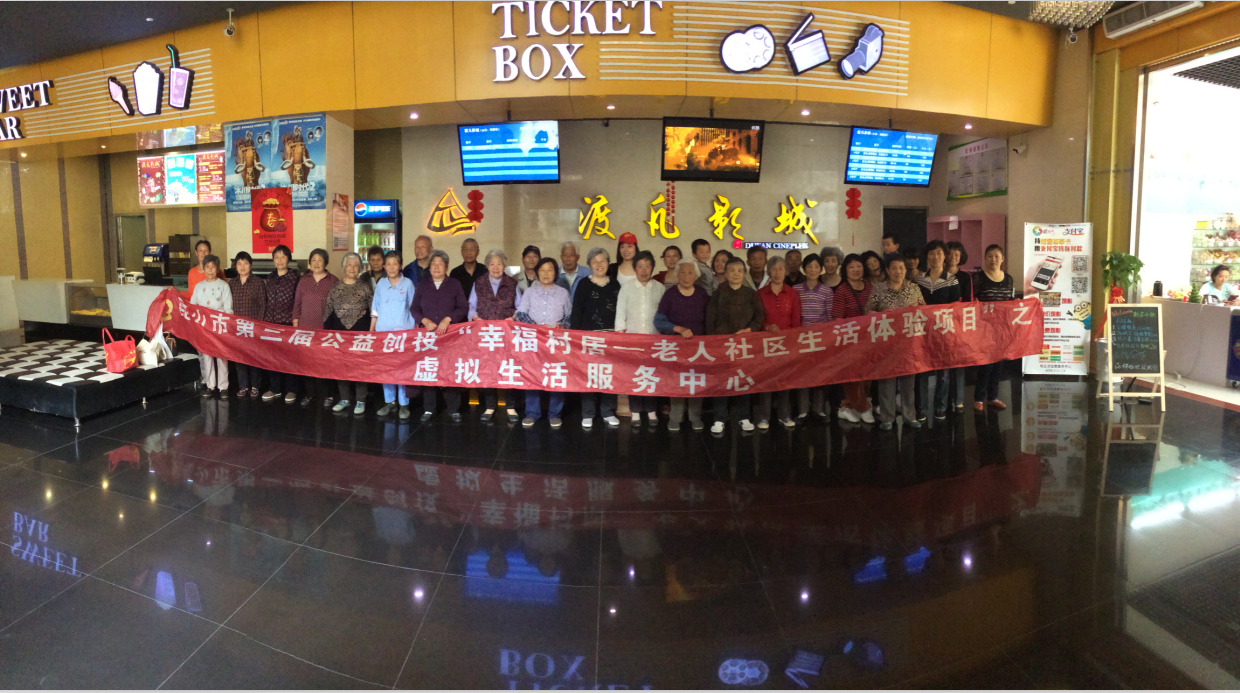 2015年5月14日下午1点30分,由昆山市第三届公益创投活动支持的幸福村居——老人社区生活体验项目,为社区老人们送来了精神食粮——带领老人们观看了爱国主义影片《战狼》。该项目以义工+社工的服务模式,促进社区老年人适应社区新生活,推动老年人群体间互动互助,扩大老年人的社交面,进一步完善他们的生理和精神需求,帮助他们度过美好的晚年生活,本次活动共有33名服务对象参与。