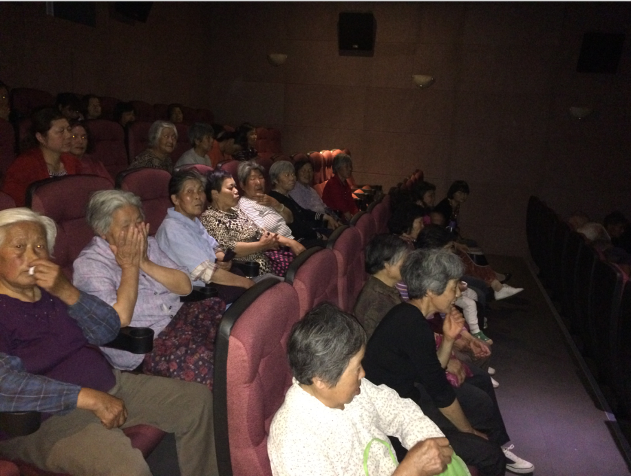 项目服务对象个个都认真地听影城工作人员的介绍:影城的座位、影片播放的机器设备,老人们忍不住先睹为快。随后电影开始播放,在观影过程中,看到超大屏幕,听到逼真的立体声,老人们都目不转睛的看着电影,为剧情中的喜怒哀乐而情动于心。电影结束后老人们都兴奋地说:“电影很好看,设备很先进,好像身临其境一般。”看着老人们脸上那满足的神情和开心的笑容,即使累一点苦一点我们也觉得很值得。