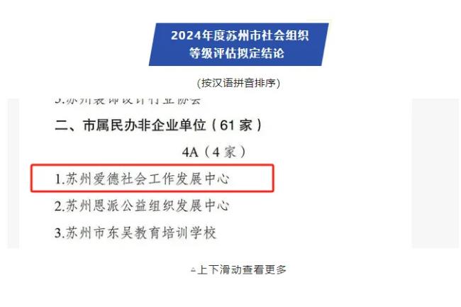 喜报!苏州爱德社会工作发展中心获评4A级社会组织2025-05-07 19:47:11